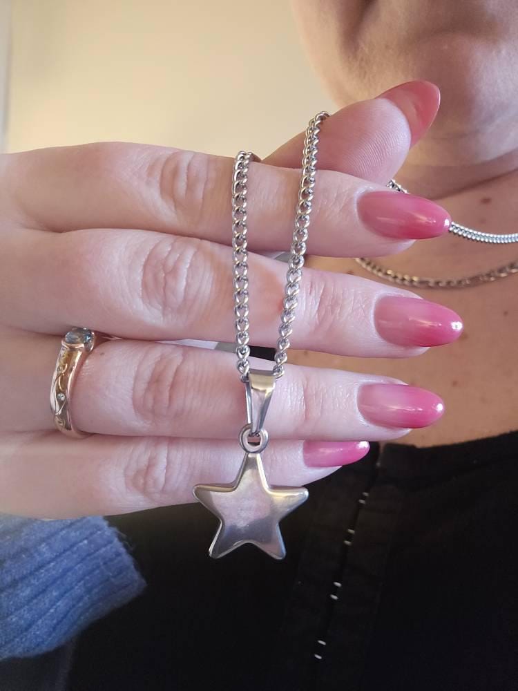 Silver Stainless Steel Star Pendant Necklace, Men's Necklace, Dimensional Star Pendant, Men's Jewelry, Celestial Jewelry, Woman's Necklace, 7/8" x 3/4" x 3/16" thick